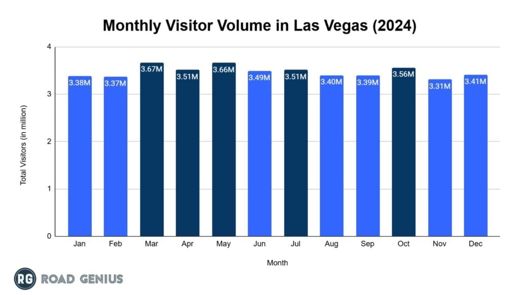 - In 2024, Las Vegas hosted 41.68 million visitors. This represents a 2.1% increase from the previous year, though it remained 2% below the 2019 pre-pandemic visitation figures.