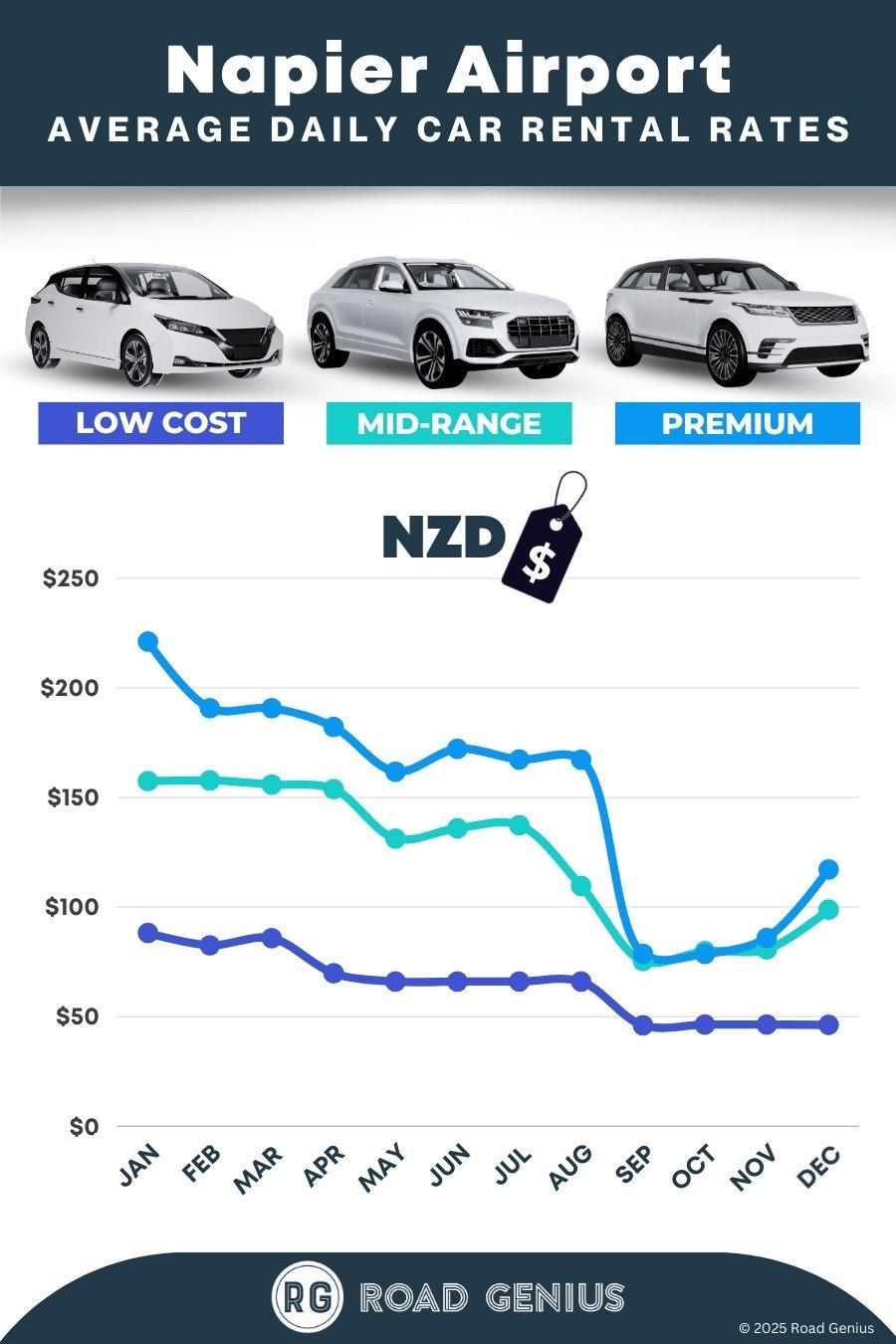 On average, car rentals at Napier Airport cost around $113 per day, with the lowest-priced rentals available from $46 per day.