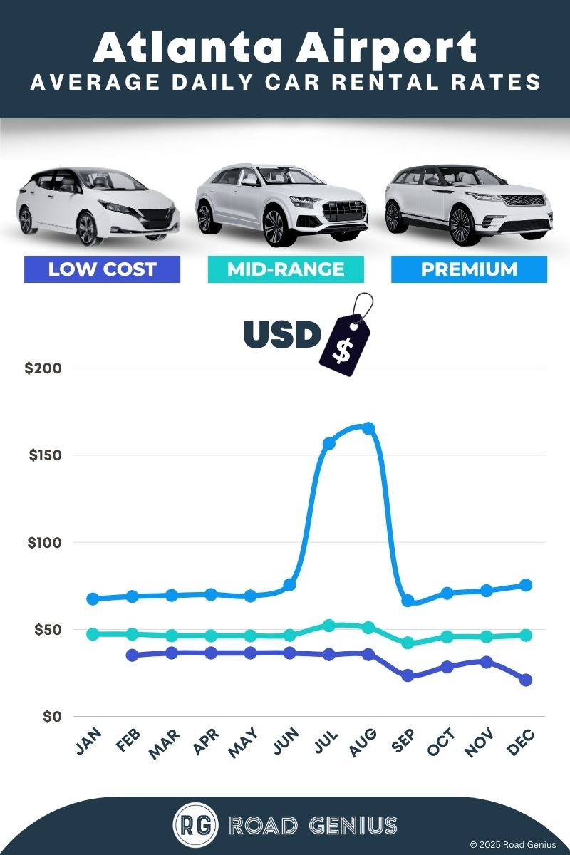 On average, car rentals in Athens cost around $59 per day, with the lowest-priced rentals starting at $36 per day.