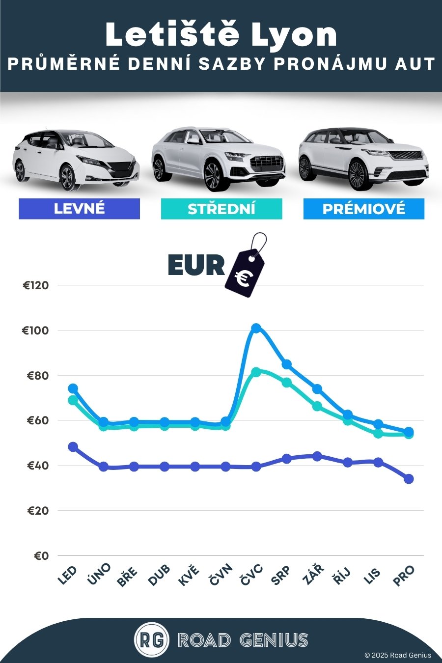 Průměrně stojí pronájem auta na Lyon Airport přibližně 57 € za den, přičemž nejlevnější pronájmy jsou k dispozici od 34 € za den.