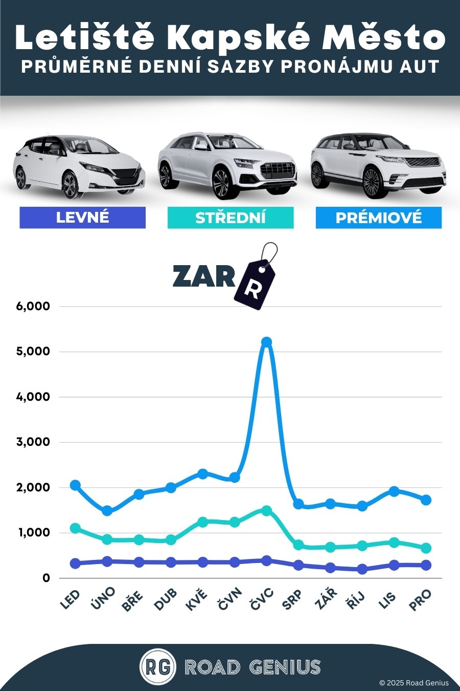 S Road Genius snadno porovnáte ceny za pronájem auta na mezinárodním letišti v Kapském Městě (CPT). Porovnejte si nabídky vozů SUV, kompaktních aut či minibusů a rezervujte si vůz bez rezervačních poplatků. Vůz si můžete vyzvednout přímo na letišti, nebo si porovnat ceny a možné úspory v pobočkách mimo letištní areál a v centru Kapského Města. Pomocí filtrů si můžete vybrat vůz s automatickou či manuální převodovkou, neomezenými kilometry nebo zvolit jednosměrný pronájem kamkoliv v Jihoafrické republice. Cestujete v hlavní sezóně od prosince do ledna? Rezervujte s dostatečným předstihem a uveďte číslo letu, aby půjčovna mohla sledovat případná zpoždění.
