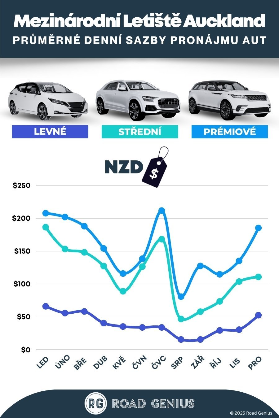 Najděte si výhodné ceny pronájmu auta na letišti v Aucklandu (AKL) s Road Genius. Srovnejte si aktuální nabídky vozů SUV, kompaktních aut a minivanů a rezervujte si vůz bez rezervačních poplatků. Vůz si můžete vyzvednout přímo na mezinárodním či domácím terminálu, nebo si vybrat pobočku mimo letiště s bezplatnou kyvadlovou dopravou. Do centra Aucklandu se pak po dálnici SH20 dostanete zhruba za 25 až 30 minut. Pokud cestujete v létě, doporučujeme si vůz rezervovat 3 až 6 měsíců předem. Zkrátíte tak čekání u přepážky a zajistíte si širší výběr vozidel.