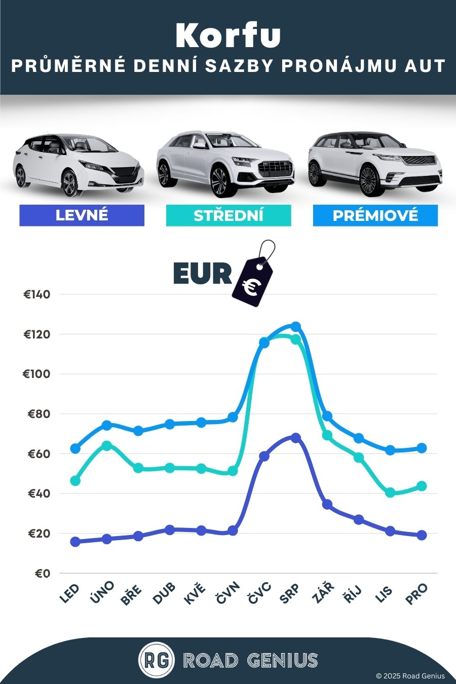 Road Genius vám usnadní hledání výhodných nabídek na pronájem auta na Korfu. Na jednom místě si snadno porovnáte ceny a provedete rezervaci. Vůz si můžete vyzvednout na letišti Korfu (CFU), v hlavním městě Korfu nebo v některém z oblíbených letovisek. Nabídky lze filtrovat podle typu vozidla, pojištění nebo palivové politiky. Během hlavní sezóny je o auta velký zájem, doporučujeme proto rezervaci s dostatečným předstihem. Zajistíte si tak širší výběr, což platí zejména pro vozy s automatickou převodovkou nebo dětské autosedačky.