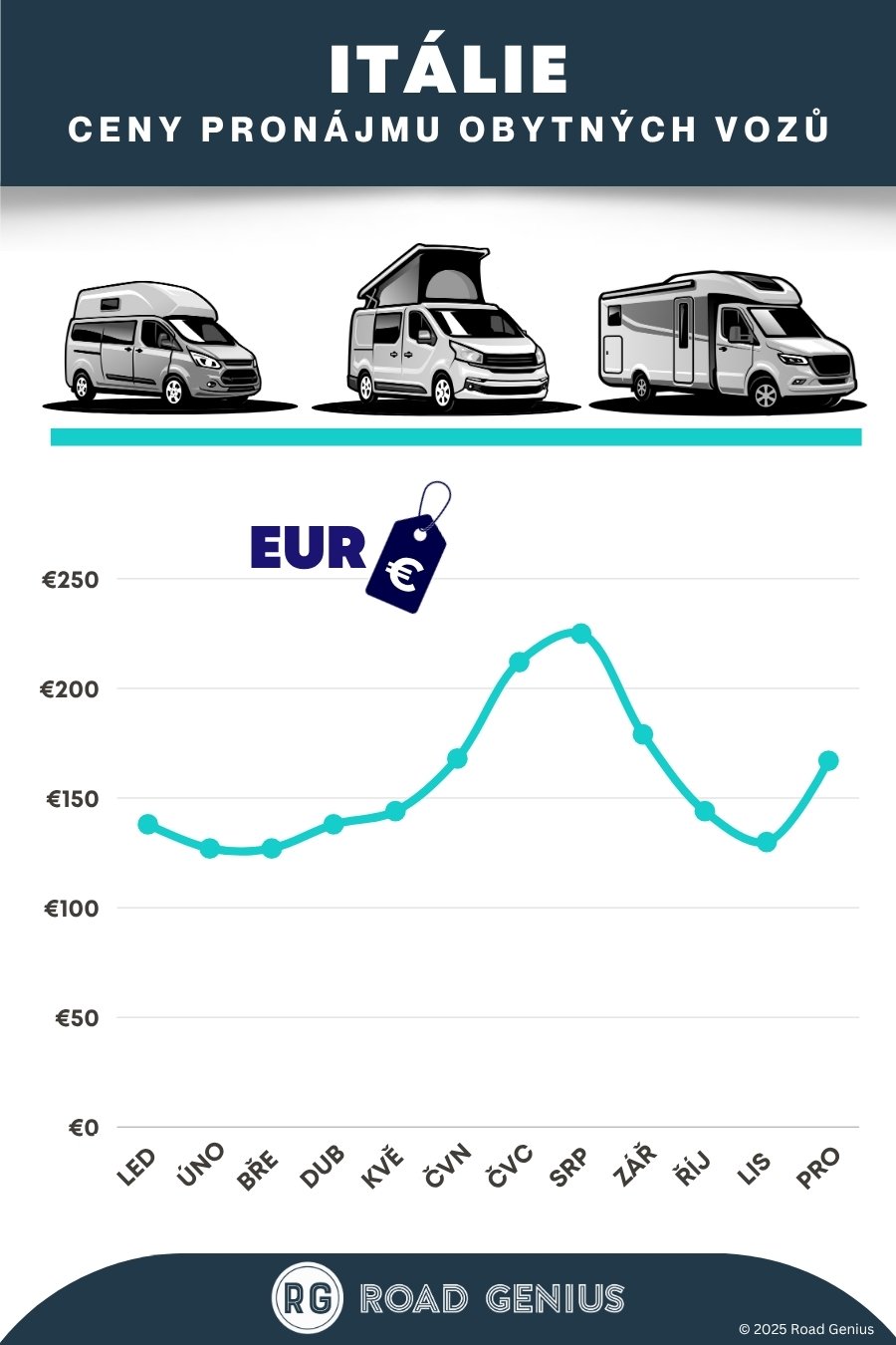 S Road Genius snadno porovnáš pronájmy obytných vozů po celé Itálii. Na jednom místě si přehledně zobrazíš ceny, dispozice vozidel i podmínky pojištění. Většina zahraničních cestovatelů začíná svou cestu v Miláně, Římě, Benátkách nebo ve Florencii. Tato města jsou oblíbenými startovními body, protože v nich sídlí velké půjčovny a nachází se tam hlavní mezinárodní letiště. Itálie je poměrně kompaktní země, takže ji teoreticky přejedeš za jediný den. Na horské a pobřežní silnice si ale v hlavní sezóně naplánuj dostatek času navíc.
