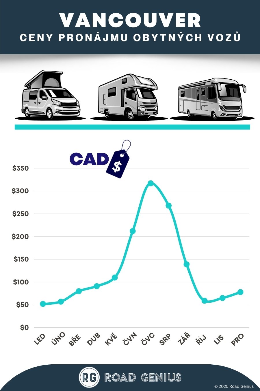 Srovnávač Road Genius ti porovná pronájmy obytných vozů v Kanadě a pomůže ti zarezervovat si ideální obytňák na tvoji cestu. Vancouver je skvělým výchozím bodem pro cesty po Britské Kolumbii. Odtud se snadno dostaneš na trajekty na Vancouver Island, na slavnou silnici Sea-to-Sky vedoucí do Whistleru a na dálnici Highway 1 směřující ke Skalistým horám. Letní termíny bývají rychle obsazené, proto si vůz rezervuj s dostatečným předstihem.