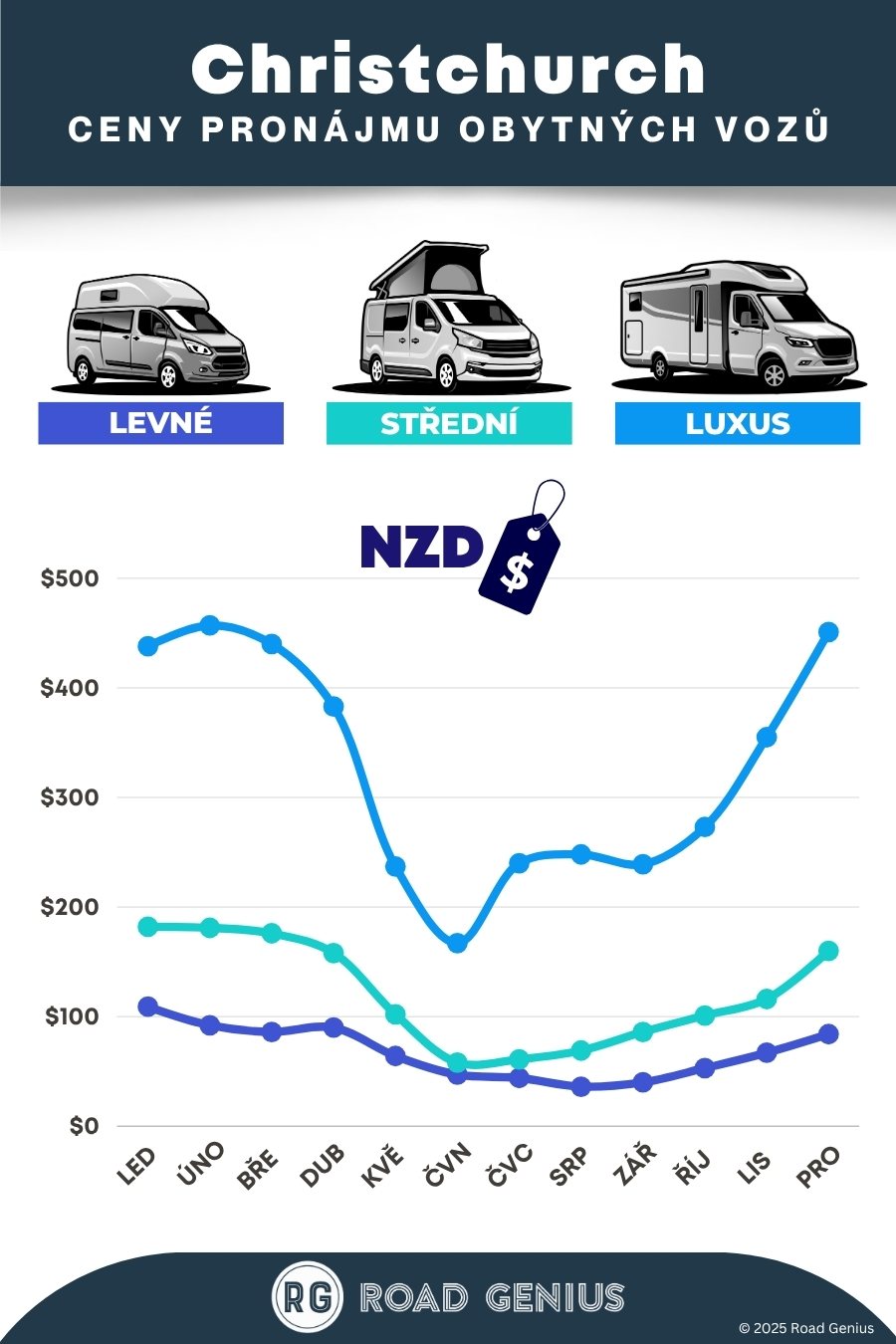 Road Genius ti pomůže porovnat pronájmy obytných vozů na celém Novém Zélandu a snadno si vybrat ten správný vůz i půjčovnu podle své trasy a rozpočtu. Christchurch je hlavní vstupní branou na Jižní ostrov, odkud se rychle dostaneš do Kaikōury (na sever), do Jižních Alp (na západ) i do Queenstownu (na jih). V tomto průvodci najdeš praktické tipy pro plánování své cesty.