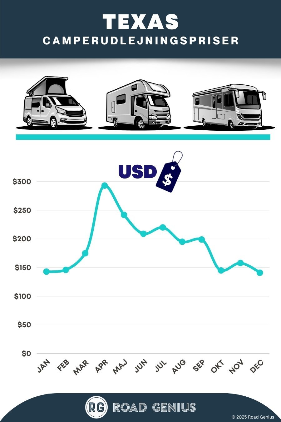 Road Genius sammenligner leje af autocampere fra flere forskellige udlejningsfirmaer, så du kan finde den helt rigtige autocamper til din tur i Texas. De mest populære byer at hente din autocamper i er Dallas-Fort Worth, Houston, Austin og San Antonio. Texas byder på ruter gennem ørken, bakkelandskab og langs Den Mexicanske Golf, men afstandene er store, så det er vigtigt at planlægge tankstop og overnatninger undervejs.