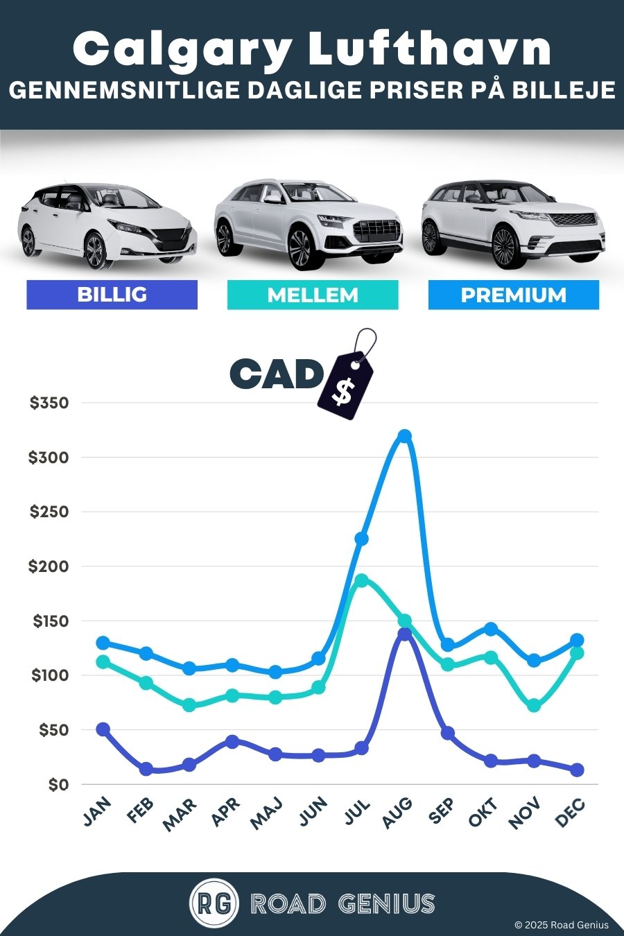 I gennemsnit koster billeje i Calgary Airport omkring 97 CAD pr. dag, og de billigste lejebiler fås fra 13 CAD pr. dag.