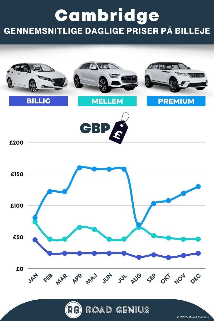 Find de bedste tilbud på biludlejning i Cambridge med Road Genius. Sammenlign priser på SUV'er, hatchbacks og minibusser, og book uden bookinggebyr. Afhent bilen i centrum eller ved banegården (Cambridge Railway Station), og kør til Ely, Newmarket, Duxford eller Norfolk-kysten. Vi sammenligner Enterprise, Avis, Budget, Europcar, Hertz og Sixt i Cambridge – book i god tid, især i semesterperioder og om sommeren, hvor der er stor efterspørgsel.