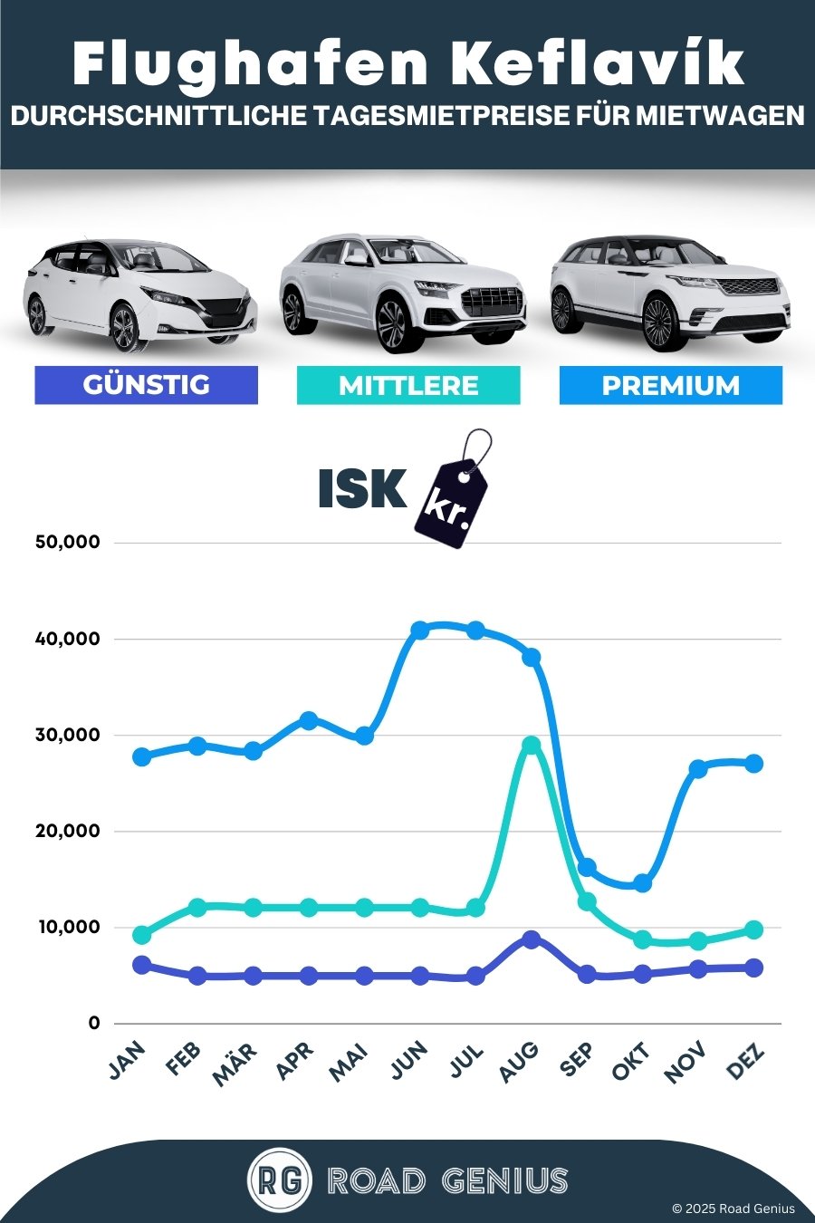 Vergleichen Sie die Standorte: Anbieter außerhalb des Flughafens KEF sind oft 10–20 % günstiger, da sie keine Flughafengebühren berechnen. Die Fahrt mit dem Shuttlebus dauert nur 5–10 Minuten.