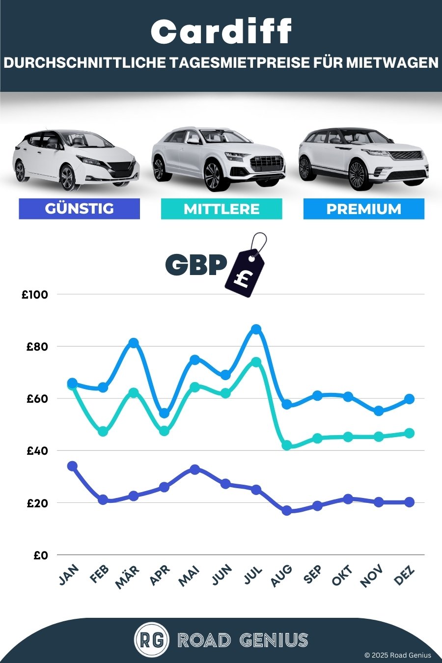 Termine von Großveranstaltungen prüfen: Während des Rugby-Turniers „Six Nations" oder bei großen Konzerten im Principality Stadium können die Mietwagenpreise stark ansteigen. Buchen Sie für diese Zeiträume weit im Voraus oder verschieben Sie die Abholung um einen Tag, um Preisspitzen zu umgehen.