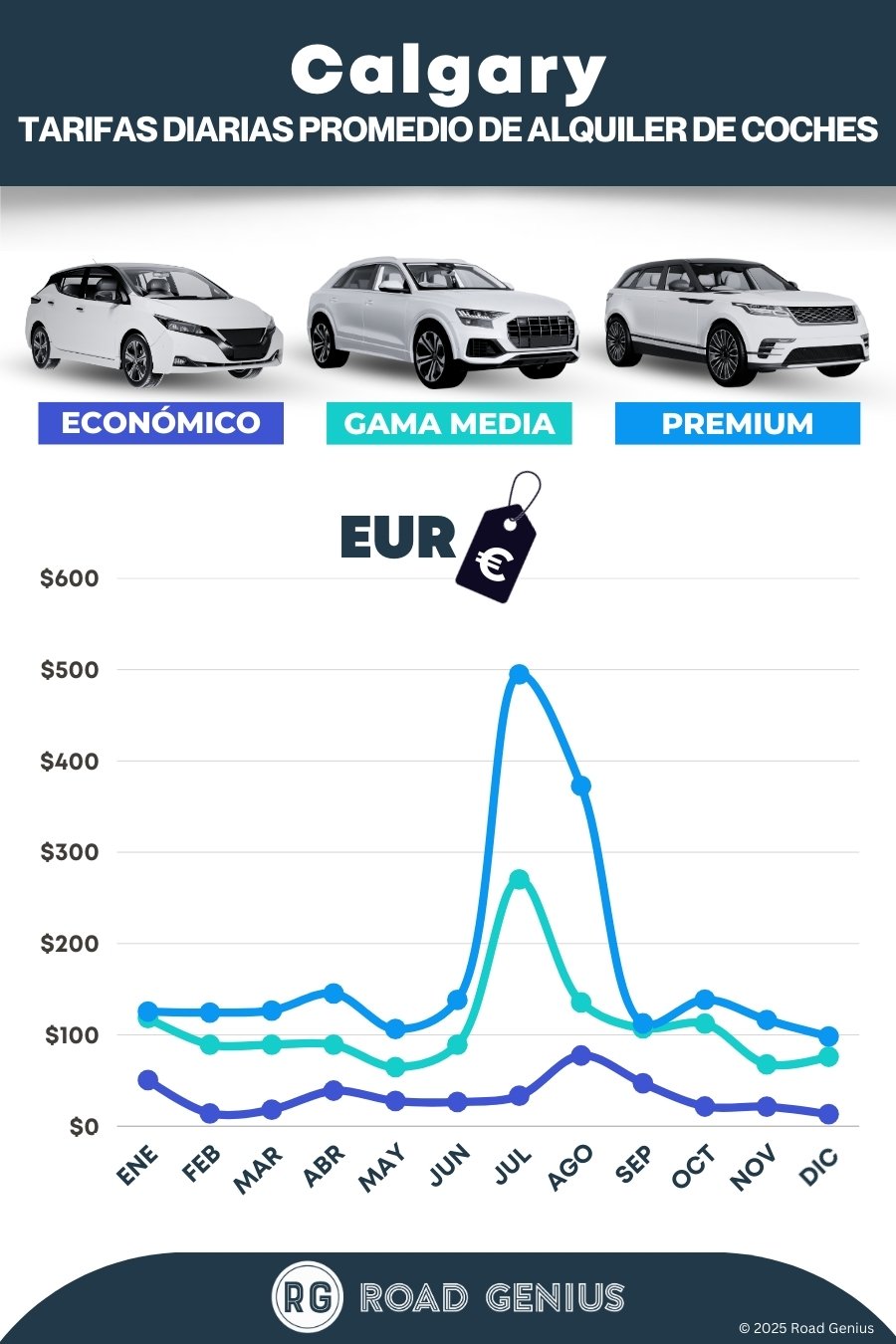 De media, el alquiler de coches en Calgary cuesta alrededor de 105 CAD al día, con los alquileres más baratos disponibles desde 13 CAD al día.