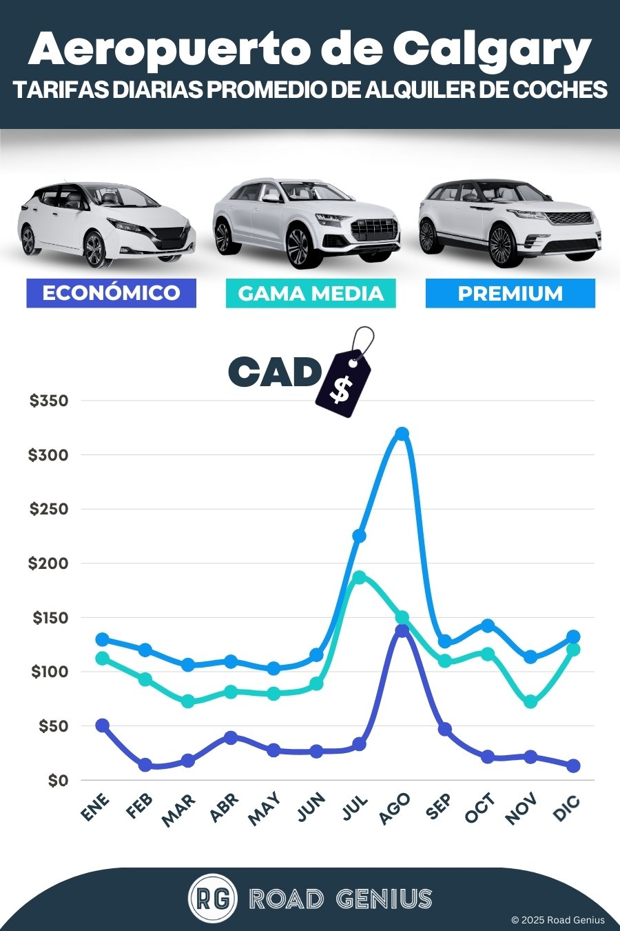 De media, el alquiler de coches en el Aeropuerto de Calgary cuesta alrededor de 97 CAD al día, con los alquileres más baratos disponibles desde 13 CAD al día.