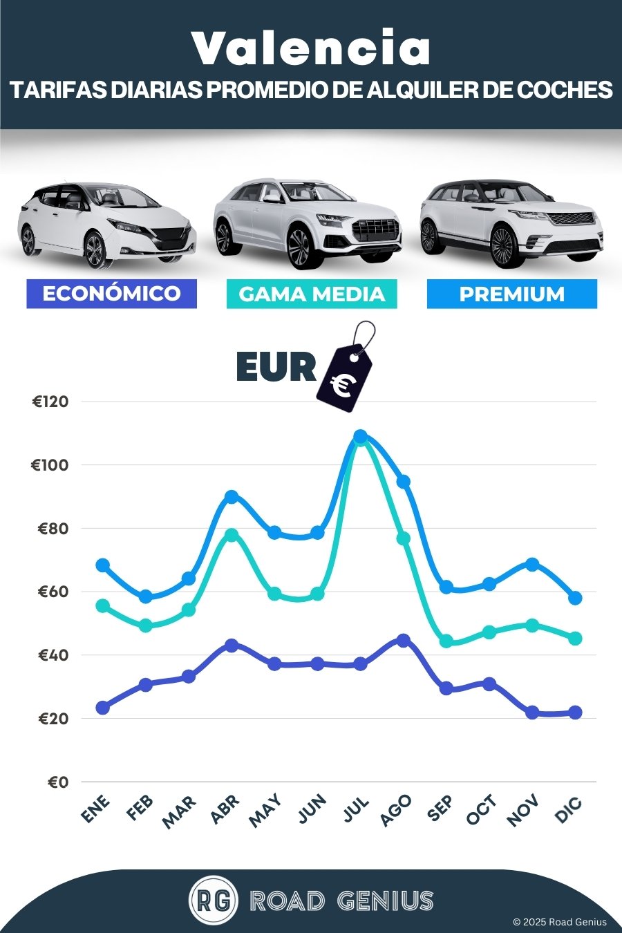 En Road Genius, te lo ponemos fácil para encontrar las mejores ofertas de alquiler de coches en Valencia. Compara precios y reserva cómodamente en nuestra web. Puedes recoger tu coche en el Aeropuerto de Valencia (VLC), en el centro de la ciudad o en la estación de tren Joaquín Sorolla. Compara las oficinas de la terminal con las que se encuentran fuera del aeropuerto y ofrecen traslado gratuito para ver cuál te conviene más. En esta guía, te contamos todo sobre aparcamiento, restricciones en el casco antiguo y las mejores rutas por la costa hacia Alicante, Jávea o Benidorm. Además, te damos consejos para reservar al mejor precio y elegir entre coche manual o automático.