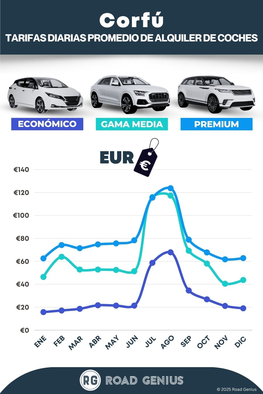 Con Road Genius, encontrarás fácilmente las mejores ofertas de alquiler de coches en Corfú. Compara precios y reserva en un solo sitio. Recoge tu coche en el Aeropuerto de Corfú (CFU), en la ciudad o en las zonas turísticas más populares, y filtra las ofertas por tipo de vehículo, seguro y política de combustible. En temporada alta los coches se agotan rápido, así que reserva con antelación para tener más opciones, especialmente si buscas automáticos o sillas infantiles.