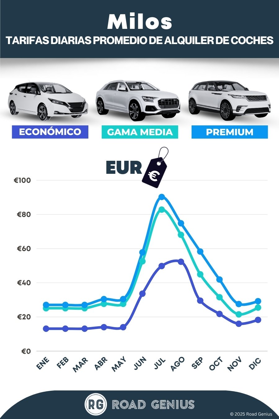Nota: Es muy habitual que en julio y agosto no queden coches de alquiler en Milos. Te recomendamos encarecidamente que reserves con varios meses de antelación.