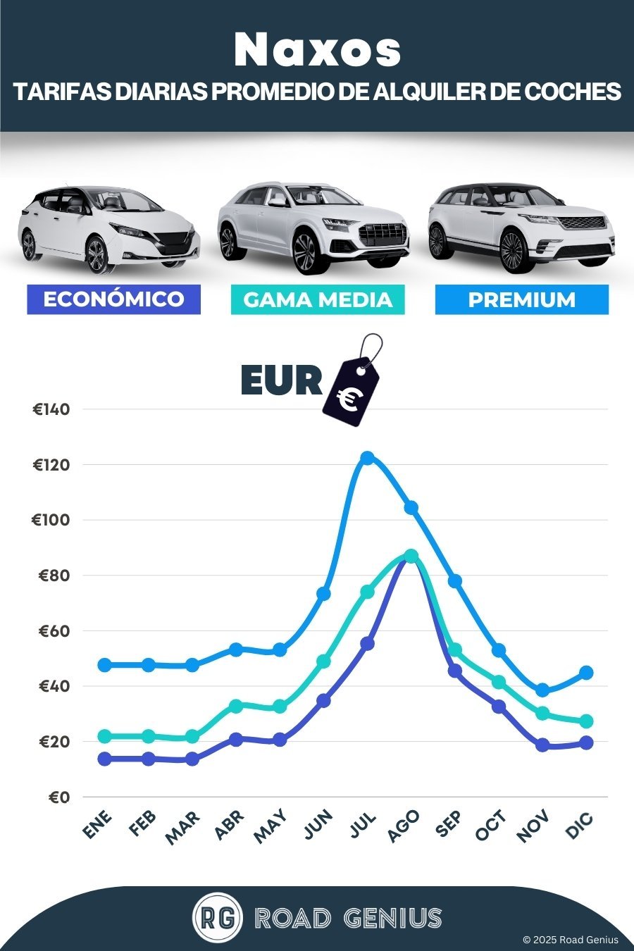 ¿Con cuánta antelación debo reservar un coche para Naxos? Si viajas en julio o agosto, deberías reservar con 2 o 3 meses de antelación. Para mayo, junio y septiembre, te aconsejamos reservar con 3 o 4 semanas de margen. En temporada baja, reservar con unos días de antelación suele ser suficiente, e incluso puedes alquilarlo directamente en una oficina al llegar.