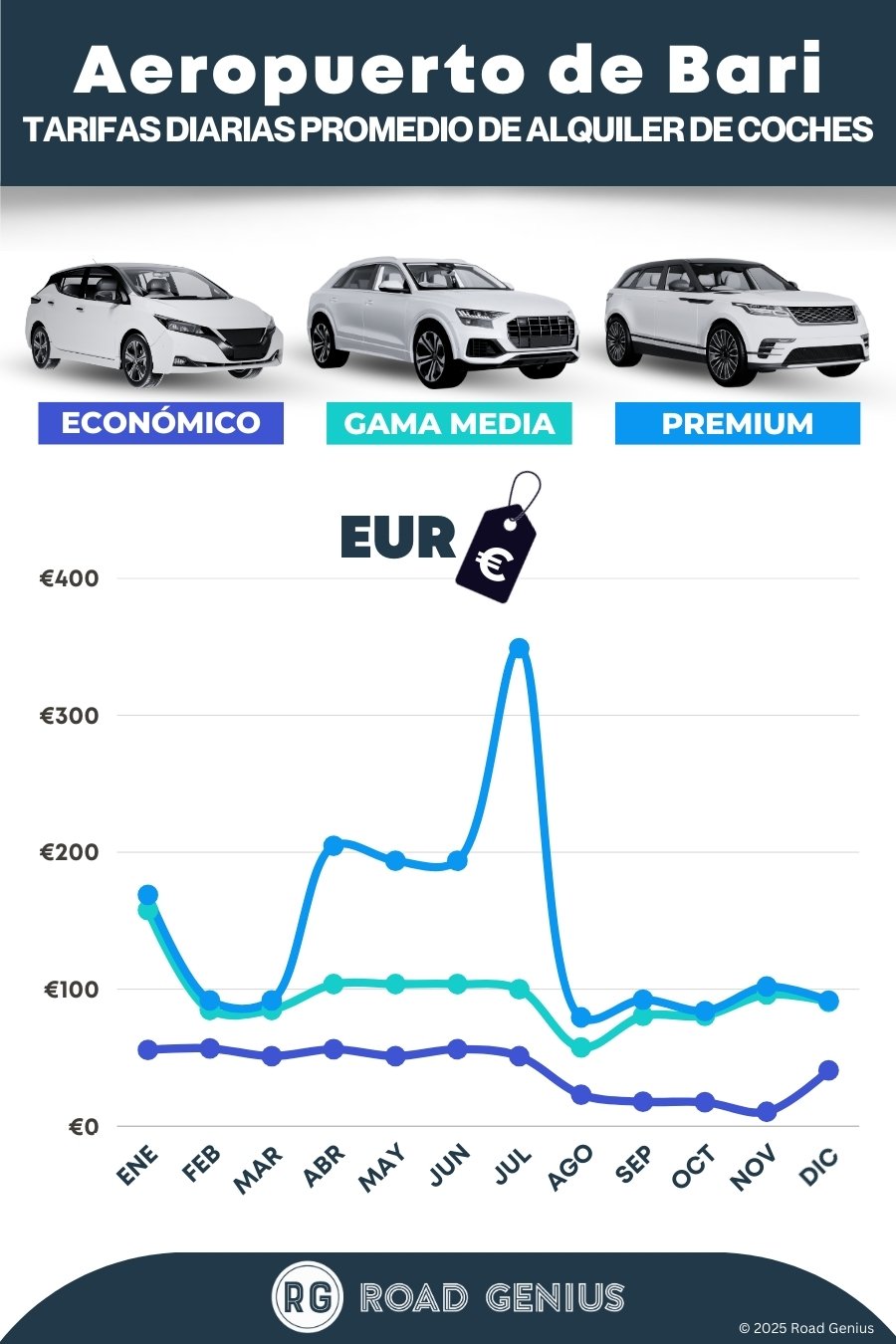 Con Road Genius, encontrar una buena oferta de alquiler de coches en el aeropuerto de Bari-Karol Wojtyła (BRI) es muy fácil. Compara precios y reserva en un único sitio. Así de sencillo. Podrás buscar coches de alquiler de las principales compañías con mostrador en la terminal de llegadas y recoger las llaves a pocos minutos de aterrizar. ¿Planeas una ruta en coche por Puglia? Filtra por coches automáticos y alquileres de solo ida dentro de Italia. Si viajas en verano, te recomendamos reservar con antelación para asegurarte una mayor disponibilidad y mejores precios.
