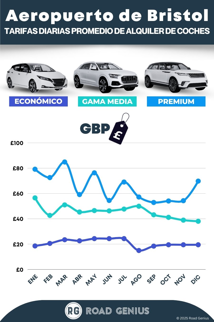 Compara aeropuerto vs. ciudad: los alquileres en el aeropuerto incluyen un recargo de aproximadamente el 26 %. Si vas a pasar unos días en Bristol primero, comprueba si te sale mejor recoger el coche en la ciudad.