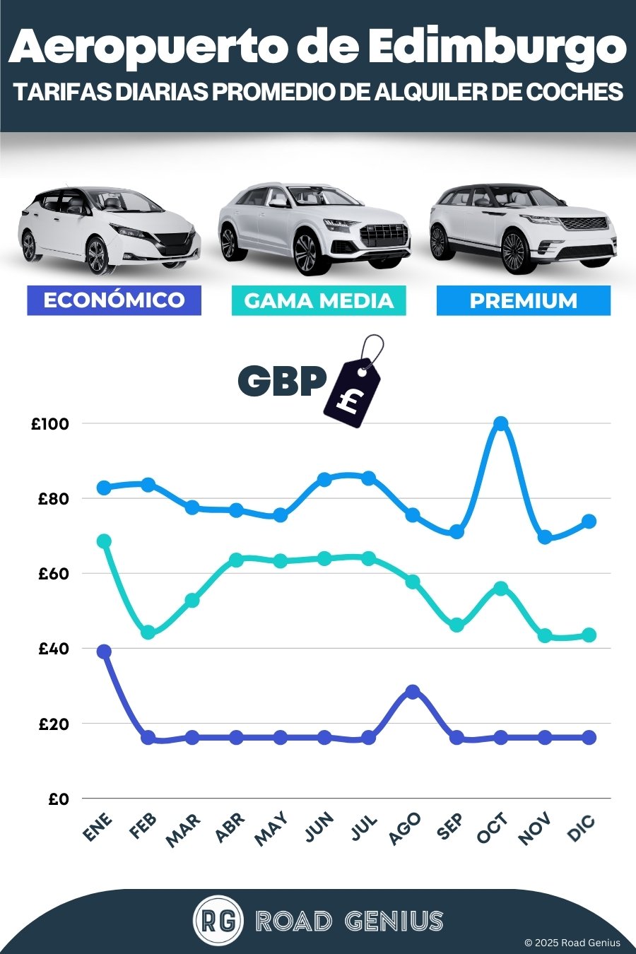 ¿Con cuánta antelación debería reservar un coche en el aeropuerto de Edimburgo? Fuera de temporada alta, 2-4 semanas es ideal. En verano (junio-agosto), mejor 2-3 meses. Para el Festival de agosto, recomendamos al menos 3-4 meses, ya que se agotan rápido y suben los precios.