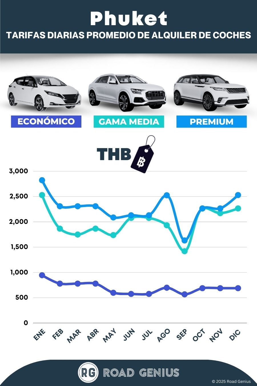 En la temporada alta de Phuket (de diciembre a febrero y festivos importantes), los precios suben y los coches se agotan. Reserva con 3 o 4 semanas de antelación o compara varios proveedores y categorías de vehículos para tener más opciones.