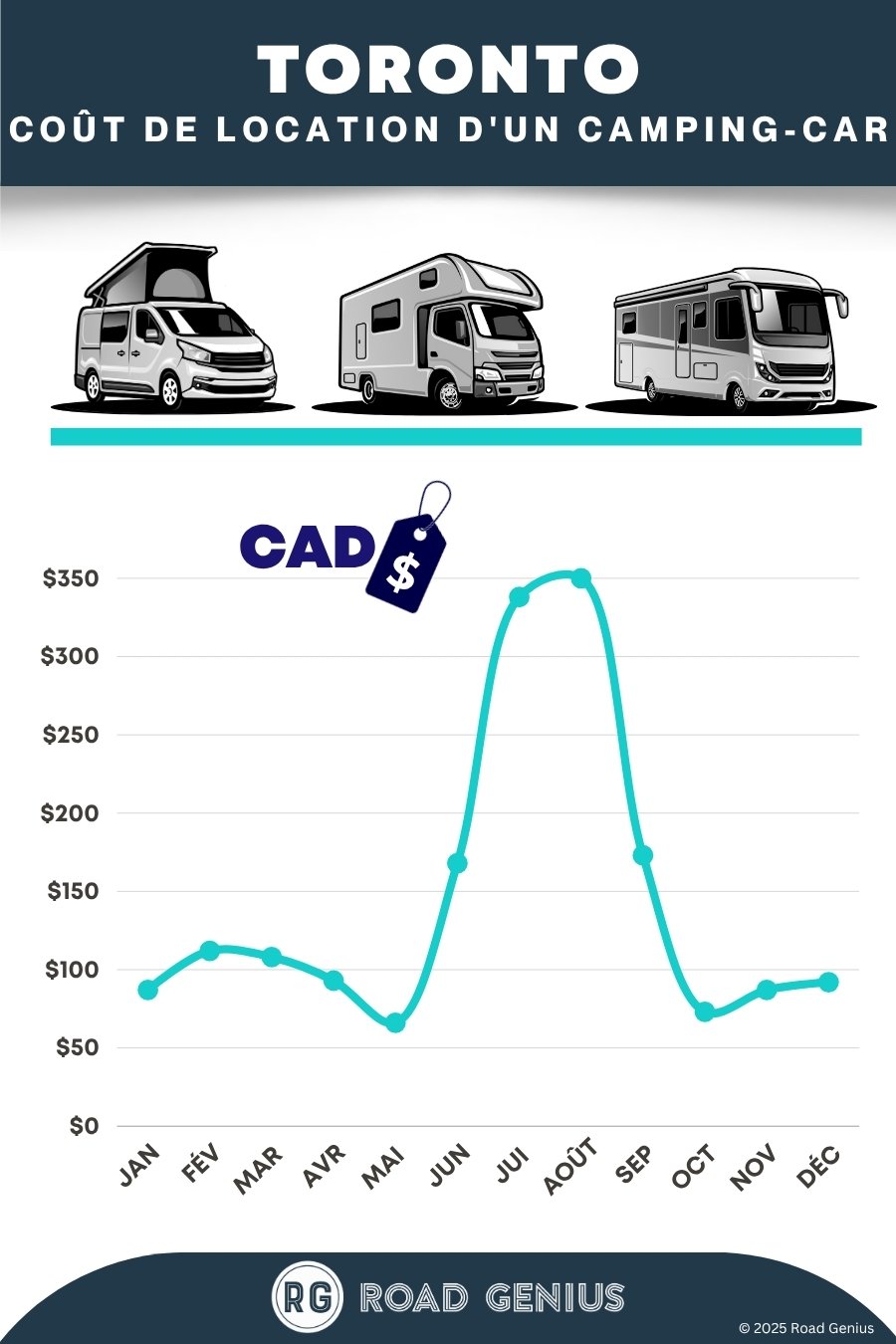 Les coûts de la location de camping-cars à Toronto dépendent de plusieurs facteurs, tels que la taille du véhicule, son ancienneté et ses équipements, ainsi que de la durée de réservation, de la saison et des lieux de prise en charge et de restitution.