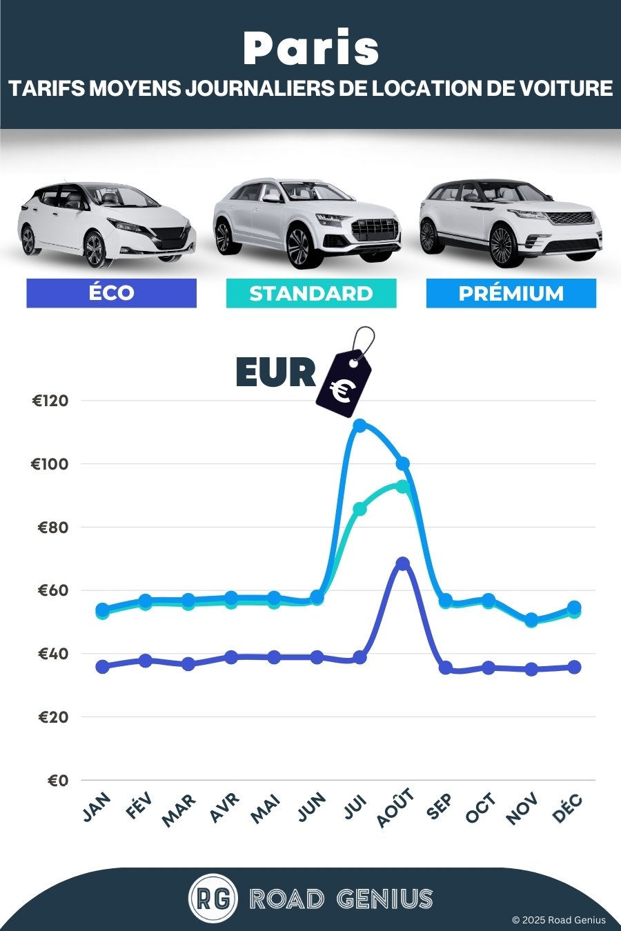 En moyenne, la location de voiture à Paris coûte environ 55 € par jour, les offres les moins chères étant disponibles dès 35 € par jour.