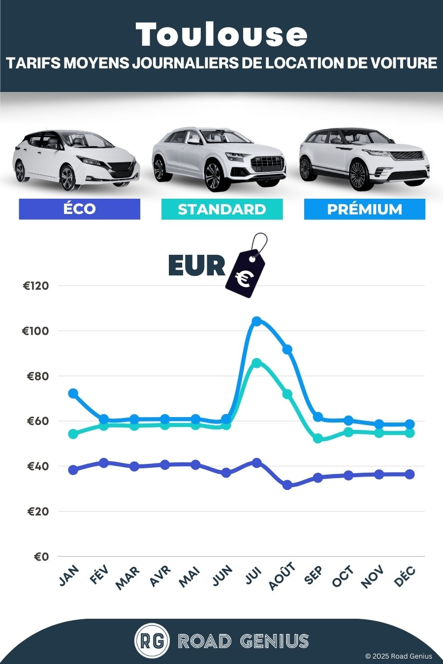 Comparez les lieux de prise en charge : les agences du centre-ville de Toulouse sont souvent 10 à 15 % moins chères que celles de l'aéroport TLS. Pensez aussi à la gare Matabiau, un bon compromis entre prix et praticité.