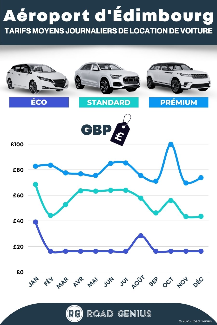 Haute saison : réservez à l'avance : Pour la période de juin à août, et surtout pour le Festival d'Édimbourg en août, réservez deux à trois mois à l'avance pour éviter la flambée des prix et un choix limité de véhicules.