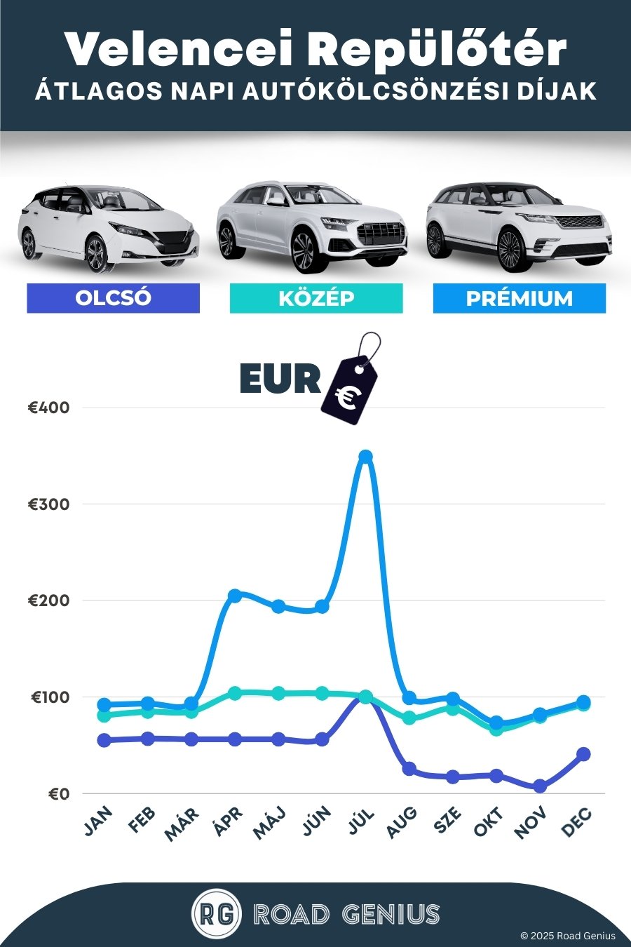 Átlagosan az autóbérlés Venice Airport-on körülbelül 91 € naponta kerül, a legolcsóbb bérleti díjak pedig 8 €-tól indulnak naponta.
