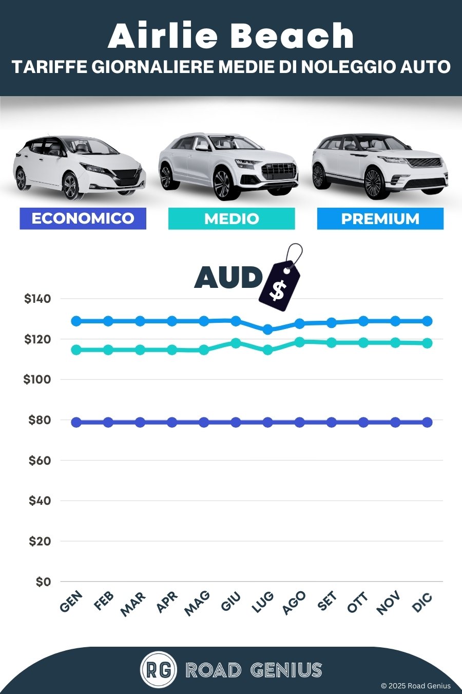 In media, il noleggio di un’auto ad Airlie Beach costa circa AUD 116 al giorno, con tariffe a partire da AUD 79 al giorno.