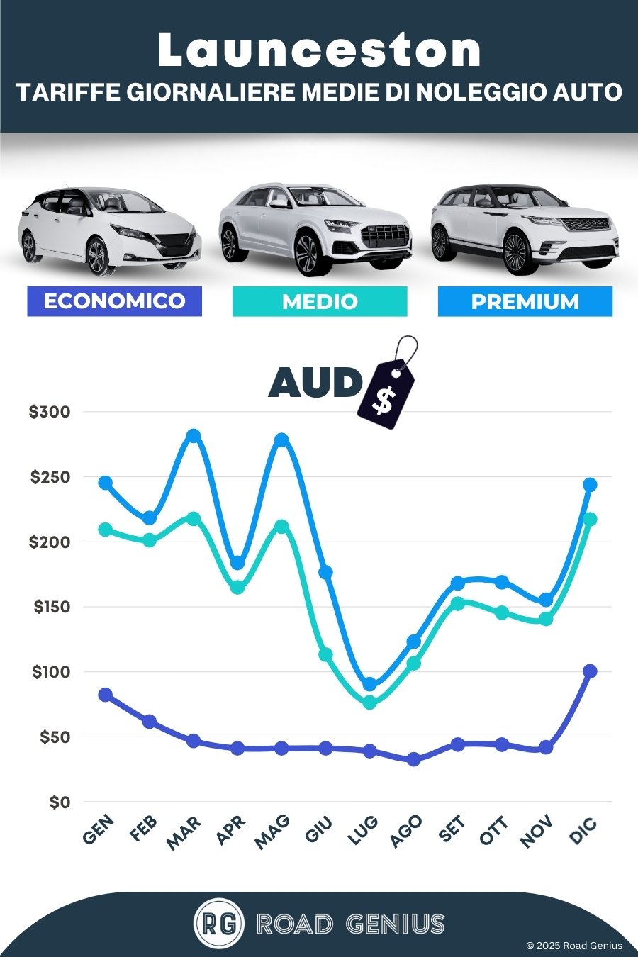 In media, il noleggio di un’auto a Launceston costa circa AUD 172 al giorno, con tariffe a partire da AUD 32 al giorno.