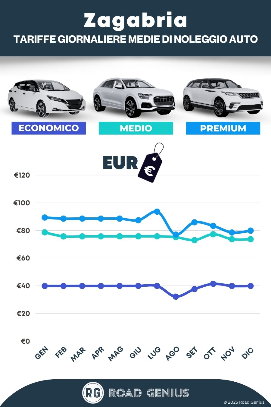 In media, il noleggio auto a Zagabria costa circa €67 al giorno, con tariffe a partire da €32 al giorno.