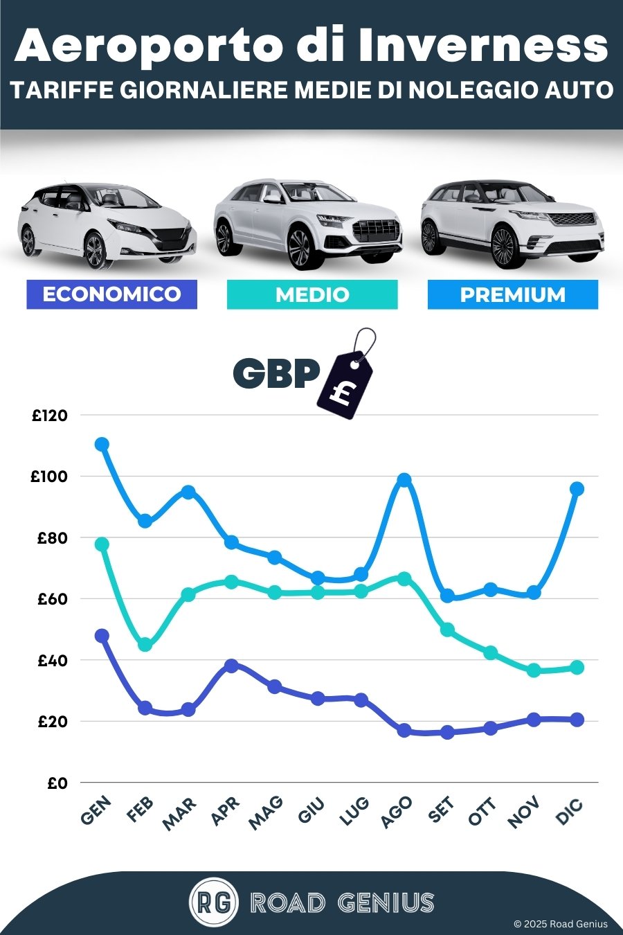 Noleggio solo andata: all'interno della Scozia il supplemento è spesso di £ 50–100. Confronta il costo di un noleggio solo andata verso Edimburgo, Glasgow o Aberdeen con quello di un viaggio andata e ritorno con riconsegna a Inverness per trovare l'opzione più economica.