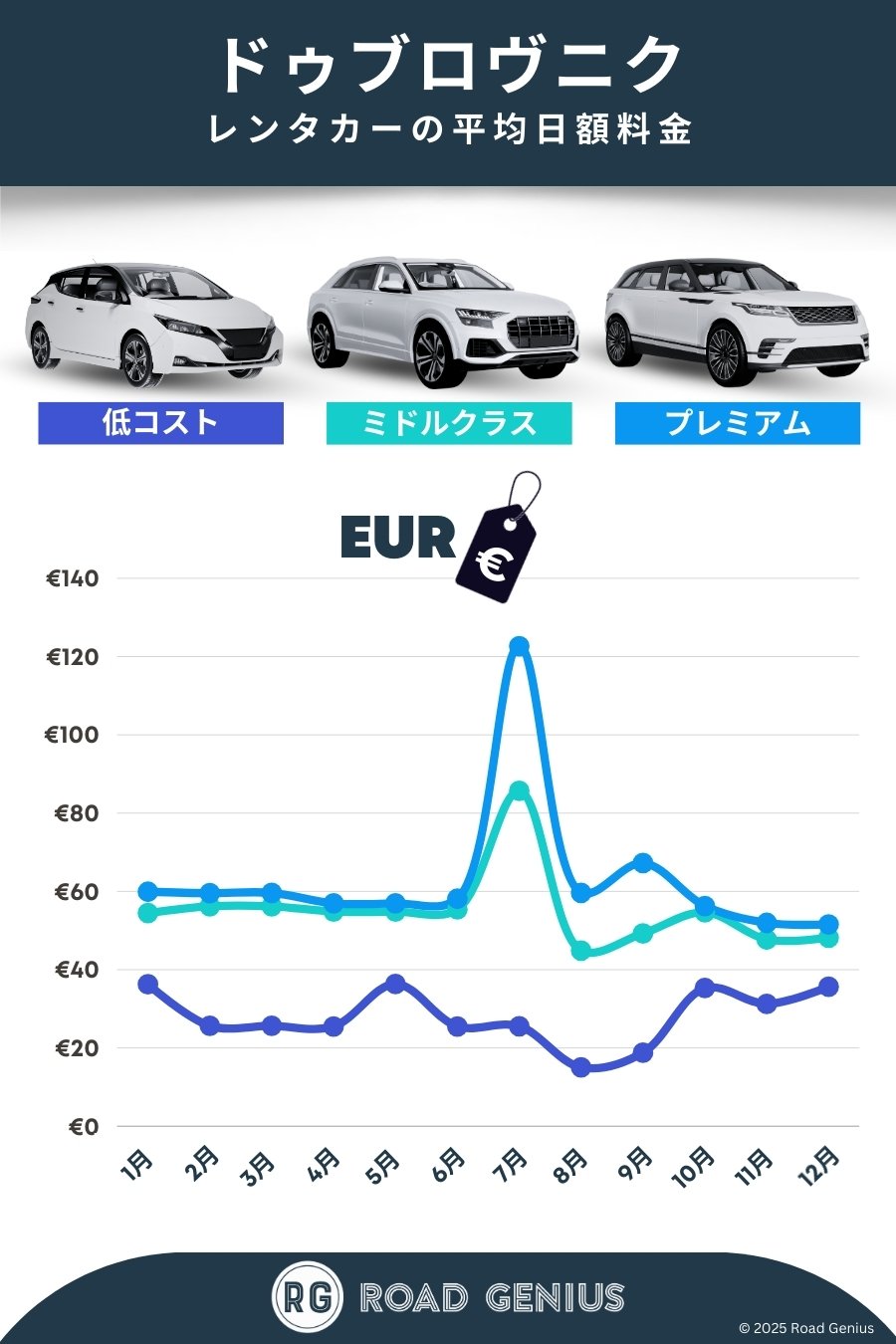 平均して、ドゥブロヴニク のレンタカーは1日あたり€49前後で、最安のレンタルは1日あたり€15から利用できます。