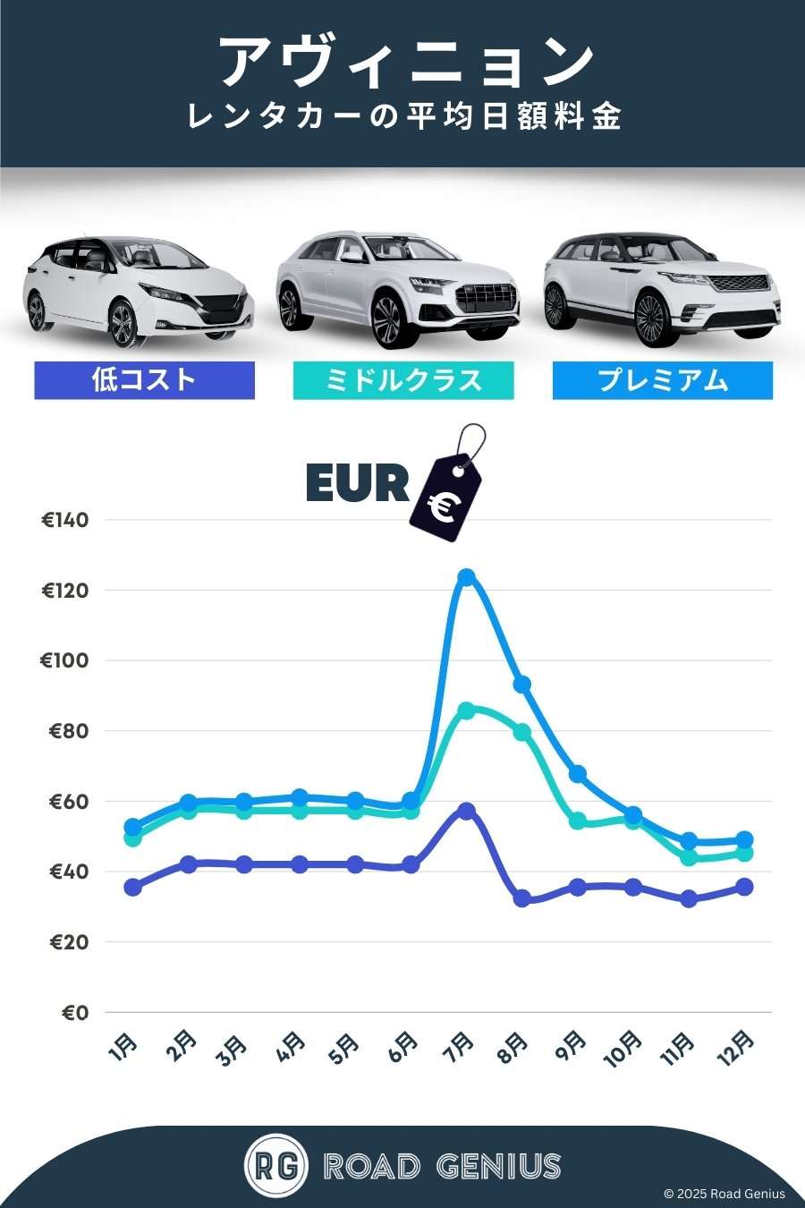 Road Geniusを使えば、アヴィニョンのお得なレンタカーを簡単に検索・比較できます。料金比較から予約まで、すべてサイト上で完結し、手続きもスムーズです。アヴィニョンTGV駅や市内中心部、アヴィニョン・プロヴァンス空港などで、Hertz、Avis、Europcarといった大手レンタカー会社の車両をレンタルできます。オートマ車(AT車)やSUV、乗り捨て(ワンウェイ)などの希望条件で絞り込み、リュベロン地方やポン・デュ・ガール、シャトーヌフ・デュ・パプへのドライブを楽しみましょう。