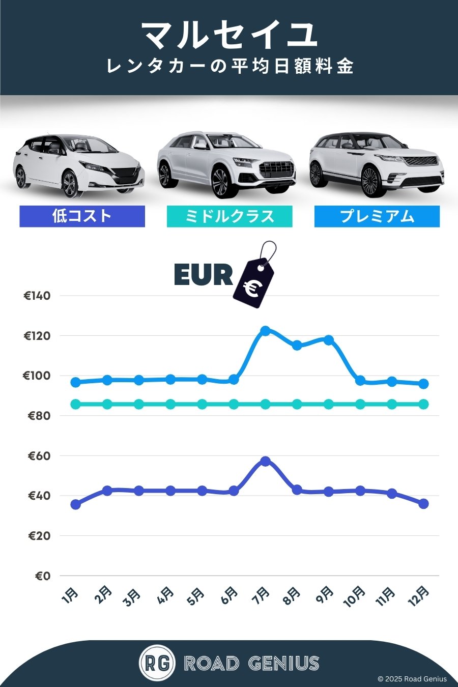 平均して、マルセイユ のレンタカーは1日あたり€77前後で、最安のレンタルは1日あたり€36から利用できます。