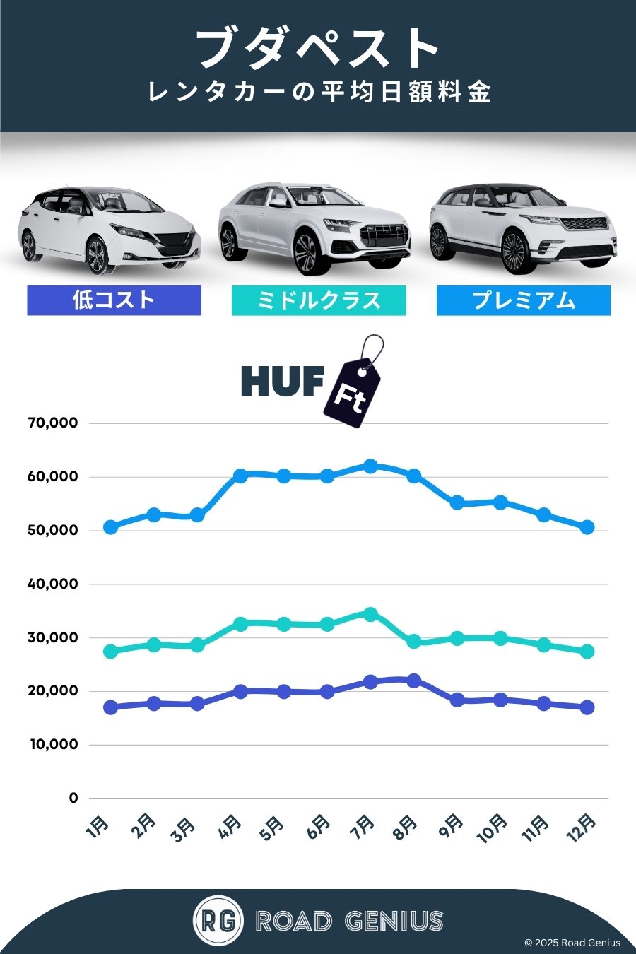 平均して、ブダペスト のレンタカーは1日あたり35,103 HUF前後で、最安のレンタルは1日あたり17,023 HUFから利用できます。