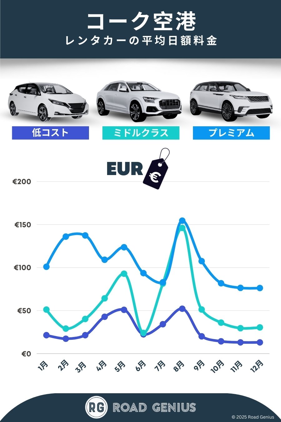 平均して、コーク空港 のレンタカーは1日あたり€63前後で、最安のレンタルは1日あたり€13から利用できます。