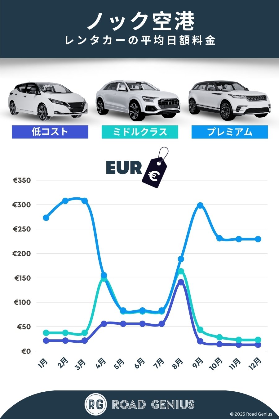 平均して、ノック空港 のレンタカーは1日あたり€104前後で、最安のレンタルは1日あたり€13から利用できます。