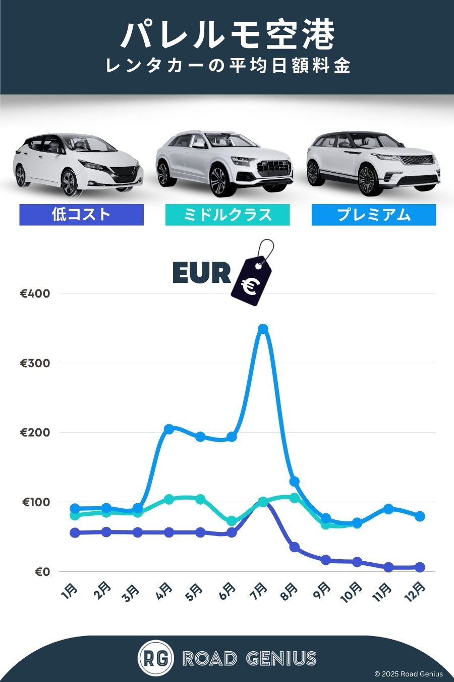 平均して、パレルモ空港 のレンタカーは1日あたり€89前後で、最安のレンタルは1日あたり€6から利用できます。