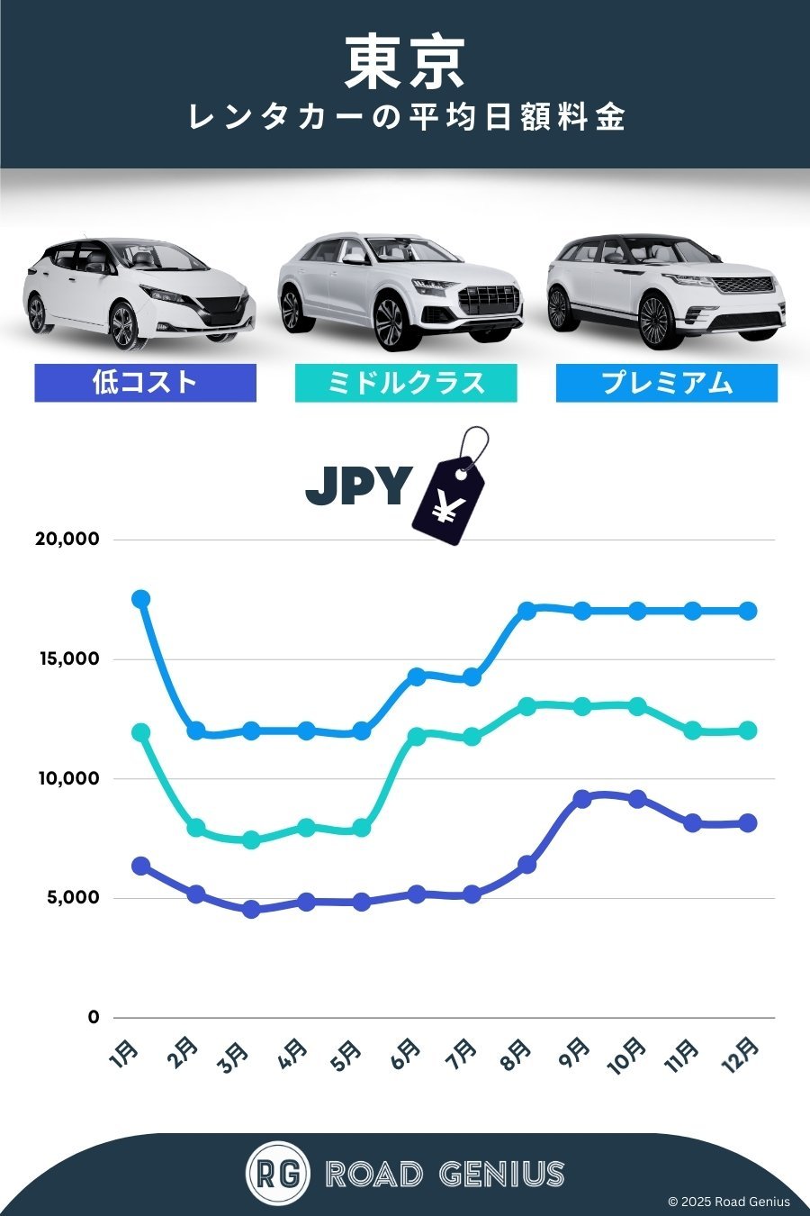 平均して、東京 のレンタカーは1日あたり¥10,734前後で、最安のレンタルは1日あたり¥4,546から利用できます。