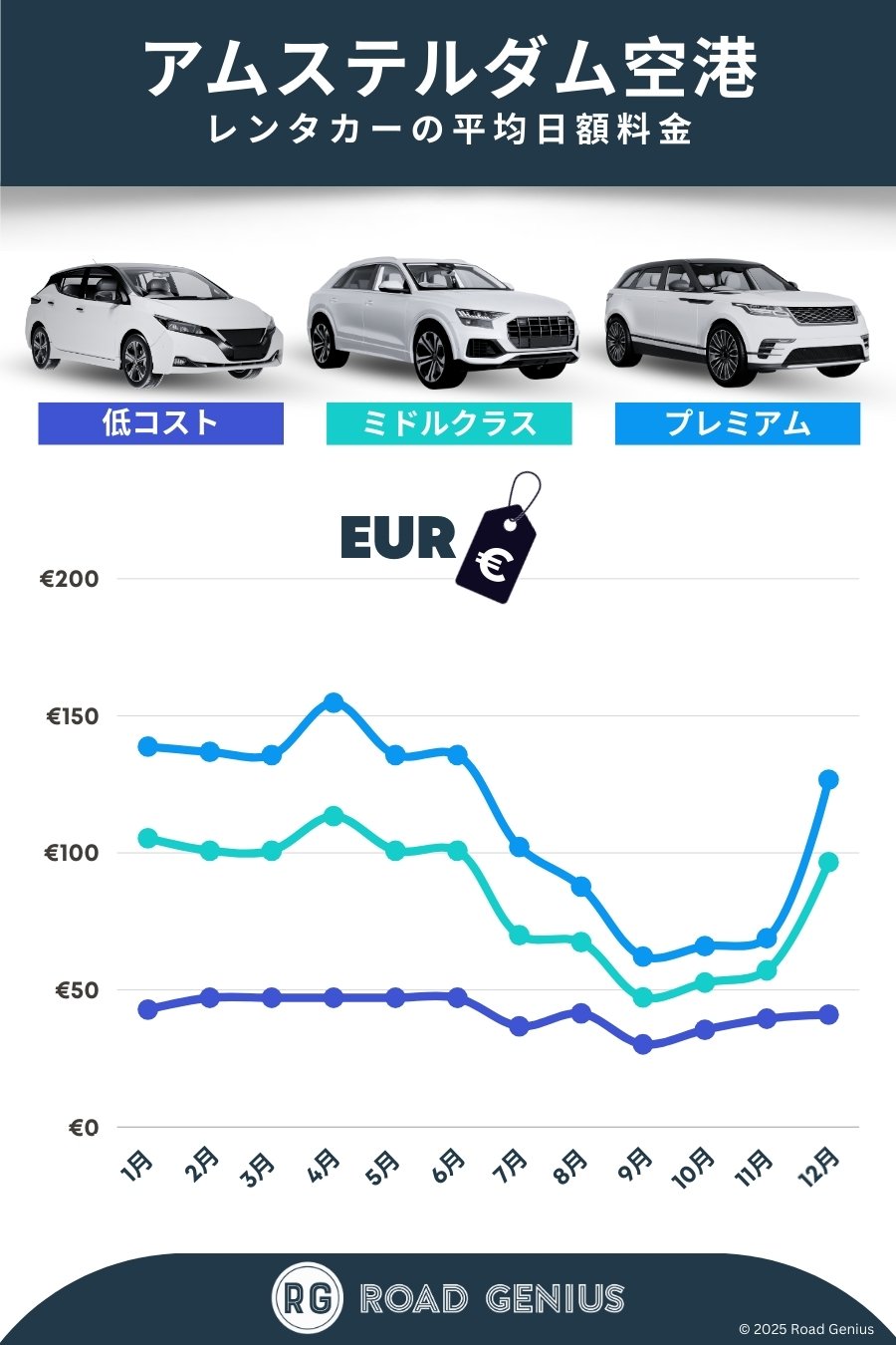 Road Geniusで、アムステルダム・スキポール空港(AMS)のお得なレンタカー料金を簡単に検索・比較できます。SUVやコンパクトカー、ミニバンなど、様々な車種の料金プランを予約手数料無料で比較・予約できます。