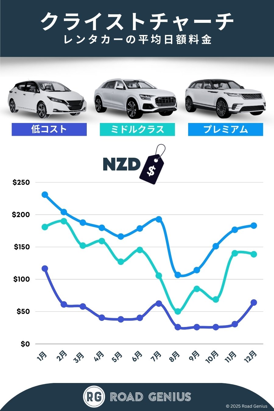 平均して、クライストチャーチ のレンタカーは1日あたりNZD$117前後で、最安のレンタルは1日あたりNZD$26から利用できます。
