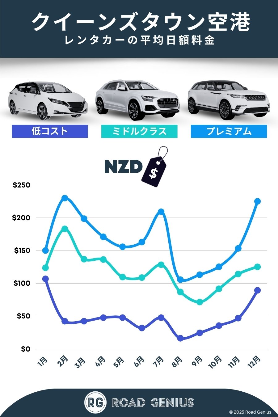 平均して、クイーンズタウン空港 のレンタカーは1日あたりNZD$111前後で、最安のレンタルは1日あたりNZD$16から利用できます。