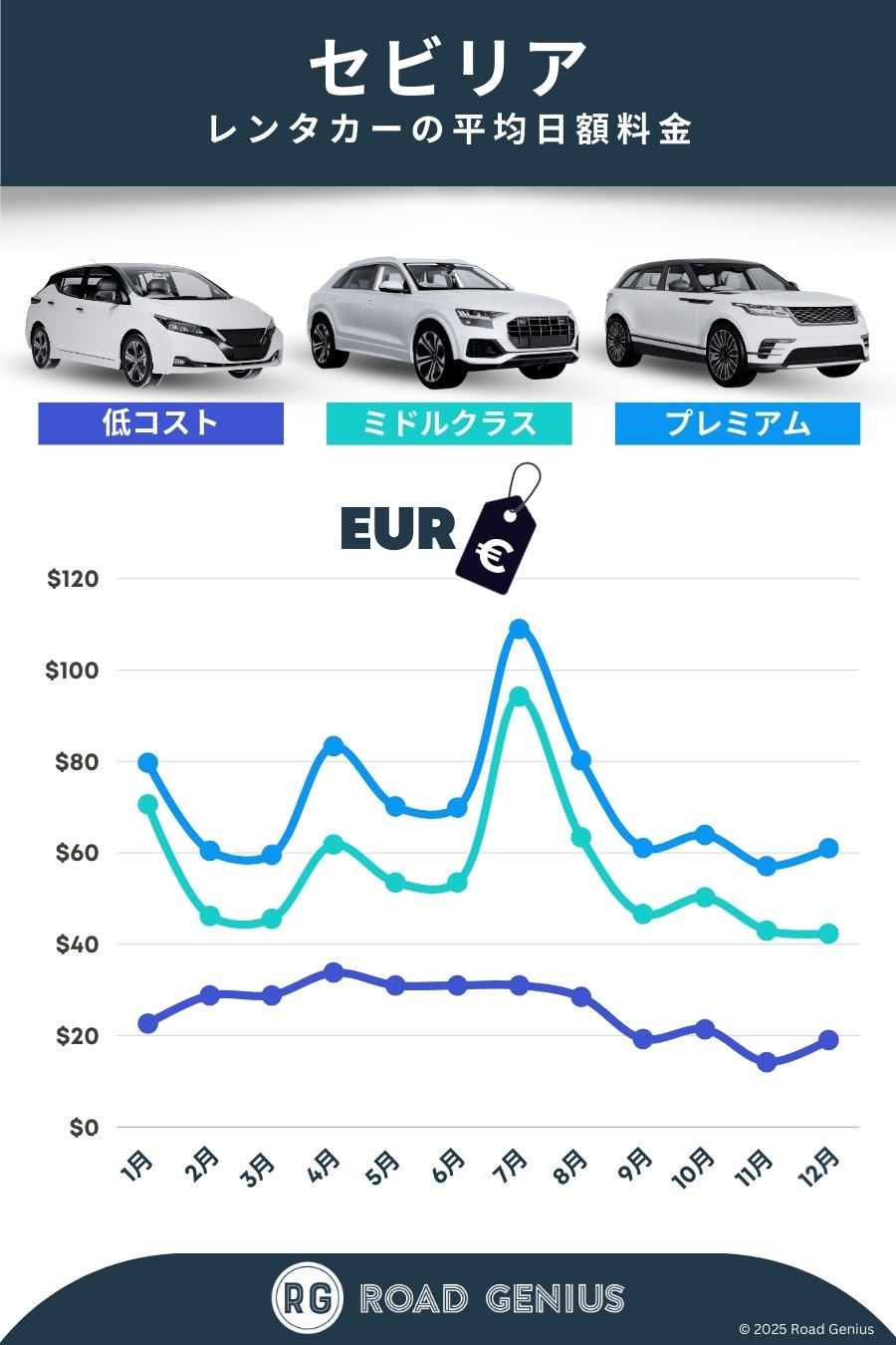 Road Geniusで、セビリアの大手レンタカー会社の料金をまとめて比較。コンパクトカーから大型SUV、ミニバンまで、ご希望の車種をお得な料金でご案内します。