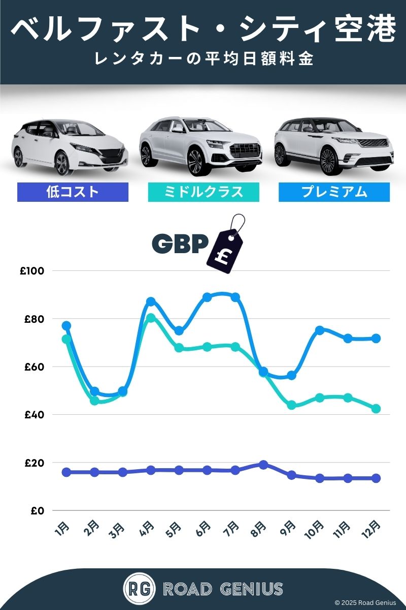 平均して、ベルファスト・シティ空港 のレンタカーは1日あたり€48前後で、最安のレンタルは1日あたり€13から利用できます。