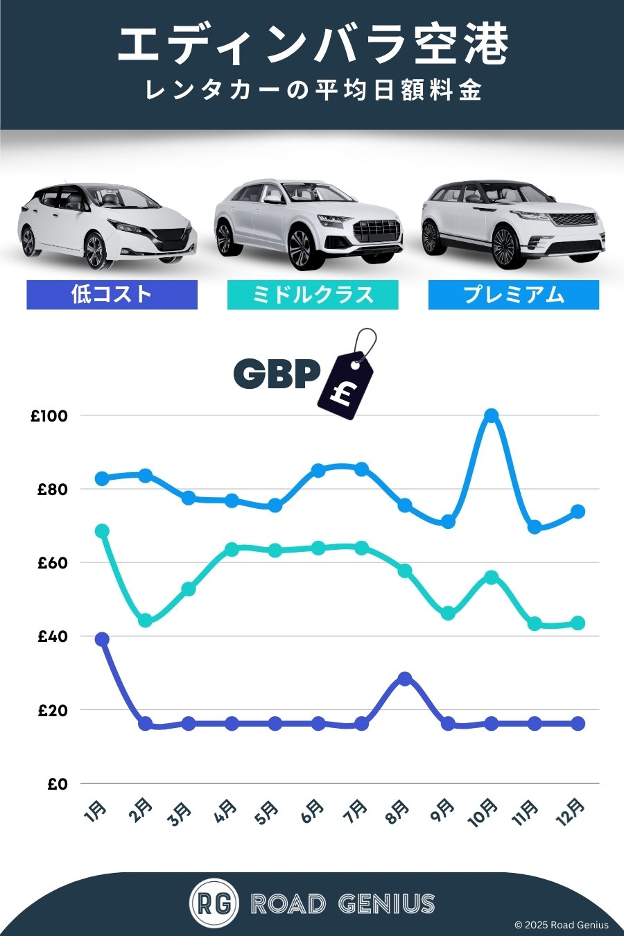 平均して、エディンバラ空港 のレンタカーは1日あたり€51前後で、最安のレンタルは1日あたり€16から利用できます。