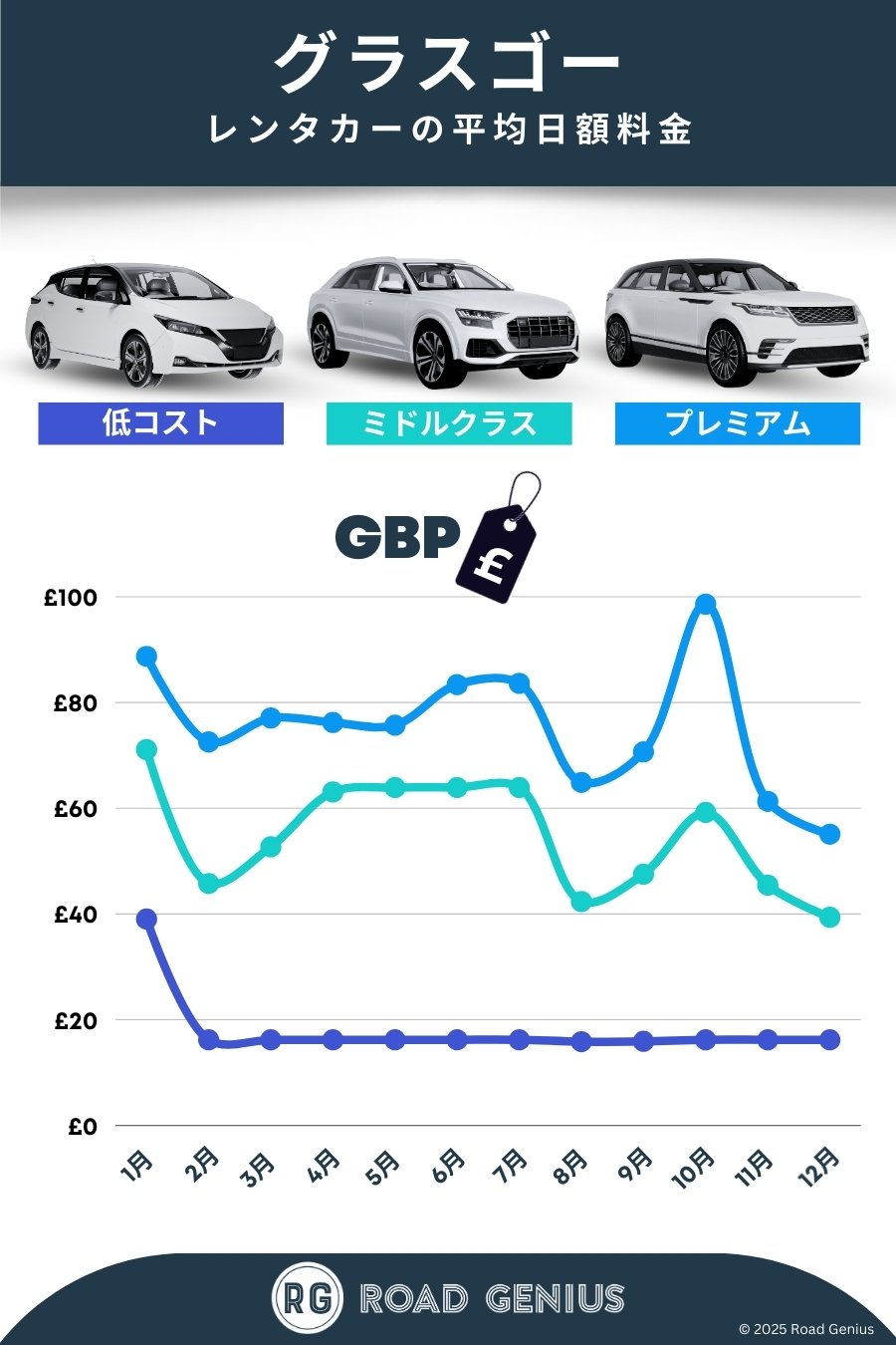 グラスゴーのレンタカーは、どのくらい前に予約すべきですか? 通常期であれば、2〜3週間前の予約をおすすめします。夏(6月〜8月)や大きなイベントの期間中は、レンタカーの需要が非常に高まるため、1〜2か月前など、さらに早めの予約をおすすめします。