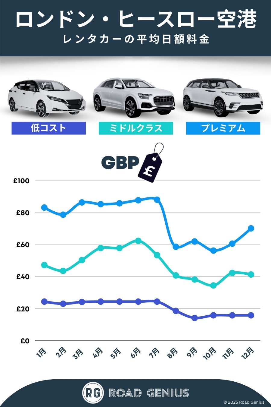 平均して、ロンドン・ヒースロー空港 のレンタカーは1日あたり€48前後で、最安のレンタルは1日あたり€14から利用できます。